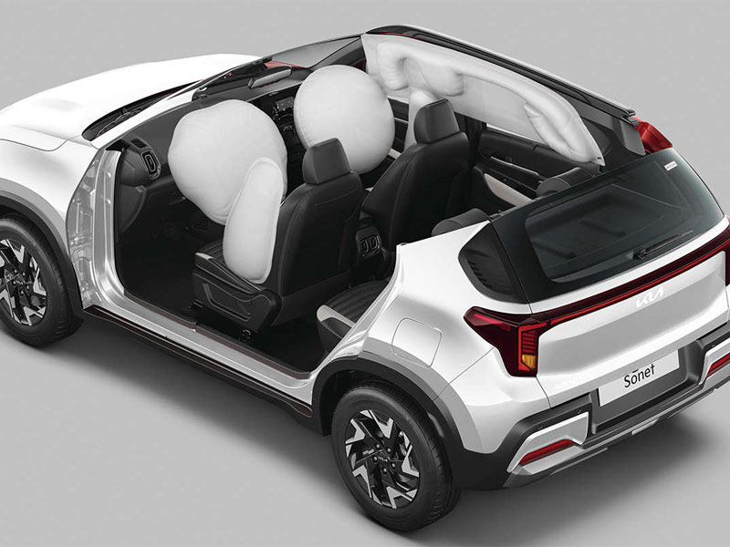 Safety comes first in the Kia Sonet with 6 airbags offered as standard across all variants. Designed to provide all-round protection, the airbags safeguard the driver and passengers in the event of a collision.