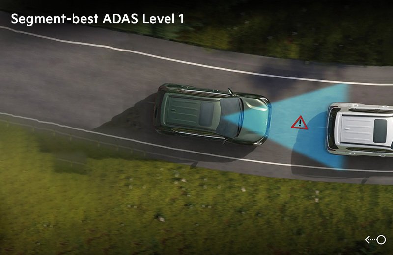 The Kia Sonet features segment-best ADAS Level 1 technology, providing advanced driver assistance features that enhance safety and driving confidence. This intelligent system helps prevent accidents and makes every journey safer.